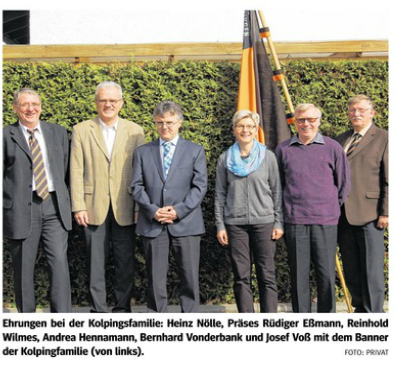Halingen. Im Rahmen der Mitgliederversammlung ehrte die Kolpingsfamilie Halingen kürzlich Andrea Hennemann, Bernhard Vonderbank sowie Reinhold und Manfred Wilmes für 40- jährige Vereinstreue.