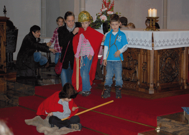 In den letzten Jahren ist regelmäßig der Halinger Kindergarten mit von der Partie – die angehenden Schulkinder spielen in der Kirche mit ihren Erzieherinnen die Geschichte vor.