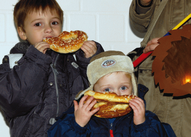 Szene nachgespielt, in der Martin, damals noch ein heidnischer Offizier, seinen Mantel mit einem Bettler teilt. Am Martinstag werden die Kinder mit Martinsbrezeln beschenkt. Und sie lernen: